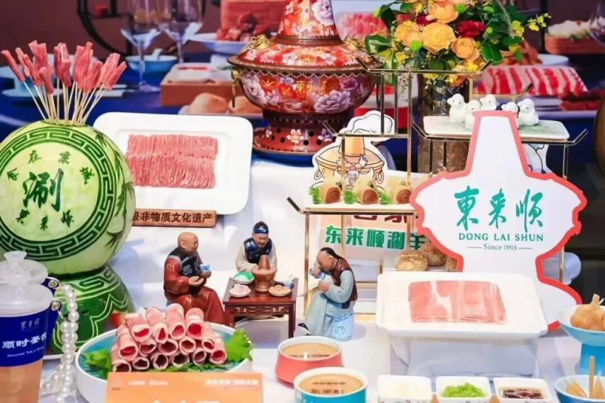 Dong Lai Shun is a time-honored hotpot brand in China, with its culinary techniques recognized as a national intangible cultural heritage item. Founded in Beijing in 1903 during the late Qing Dynasty, it is reputed for its skills in lamb slicing, hotpot preparation, pickled garlic making, and dipping sauce crafting. The mutton, sourced from Inner Mongolia, cooks instantly in the broth and remains tender even if left in the broth a little longer, delivering a delicious, savory taste.