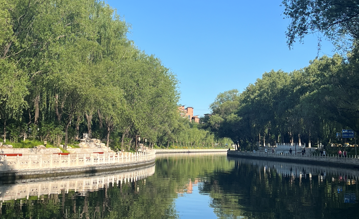 Running westward along the Nanchang River behind Beijing Zoo's back gate, you will pass Gaoliang Bridge and can continue running to the vicinity of Jiaoda East Road or even reach Dazhong Temple, traversing areas including Beijing Jiaotong University where a strong academic atmosphere prevails, with moderate foot traffic and relative tranquility throughout the route.