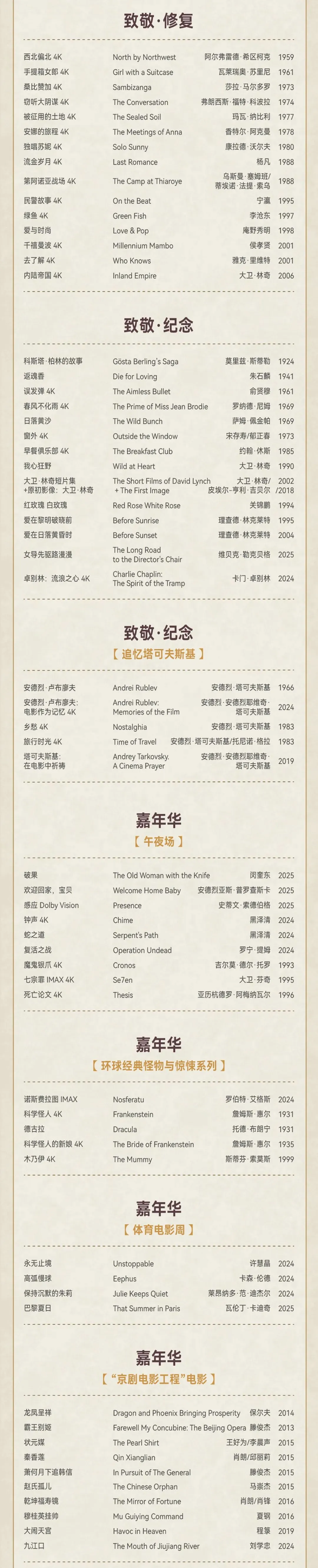 As spring breathes fresh life into April, the 15th Beijing International Film Festival (BJIFF) will make its grand return on schedule. This year's "Beijing Film Panorama" section features over 300 films including global masterpieces, restored classics and new Chinese-language works. Check out its full lineup now!