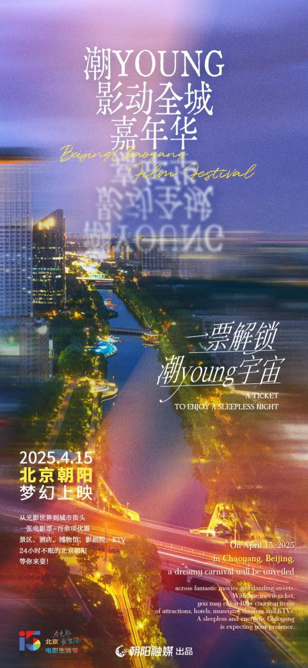 The 15th Beijing International Film Festival is just around the corner, and here is a reminder for movie lovers: don't throw away your movie ticket stubs bought in April! Starting today, Chaoyang District is launching the "Beijing Chaoyang Film Festival" (潮YOUNG影动全城) as part of its "Film+" consumer campaign.