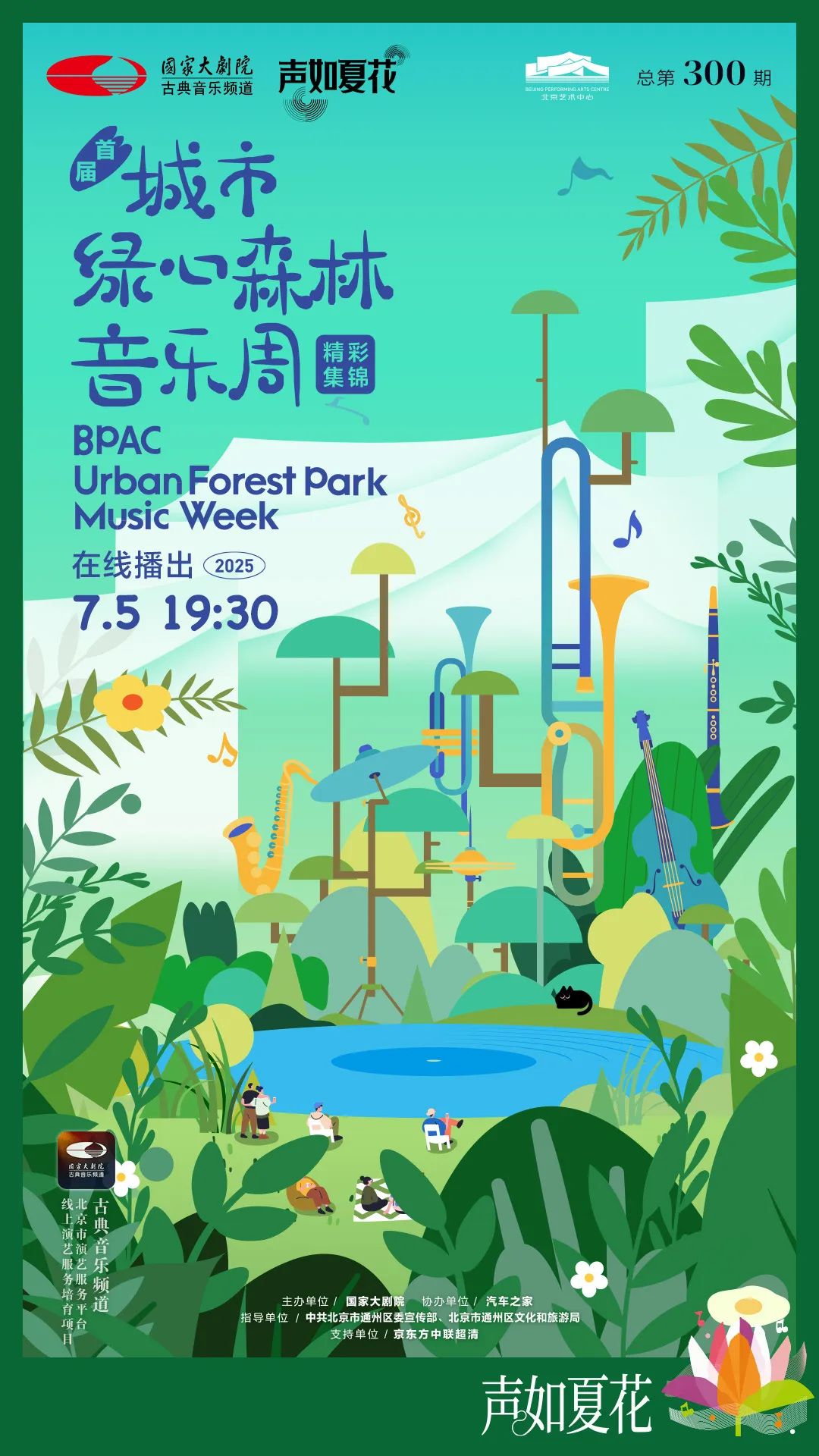The highlights of the first BPAC Urban Forest Park Music Week will be released online at 19:30 on July 5. The online performances will include rearranged rock hits by the Tianjin Symphony Orchestra under the leadership of conductor Li Biao in crossover collaboration with Chinese musician Luan Shu, as well as newly adapted and exclusive romantic love songs jointly presented by famous singer Victor Wong and China NCPA Chorus.