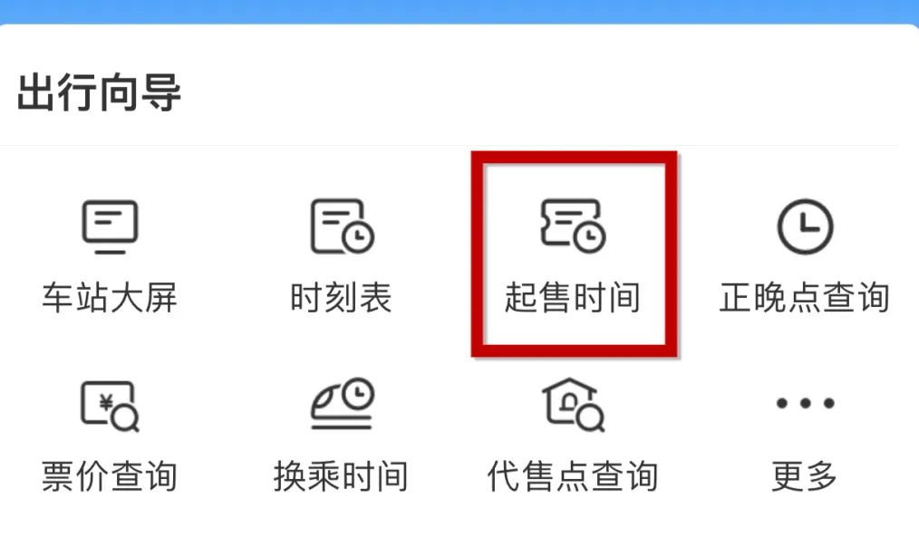 Run the 12306 App (China Railway), click on "My" (我的) on the homepage, and find "Travel Guide" (出行向导) and then "Sale Start Times" (起售时间).