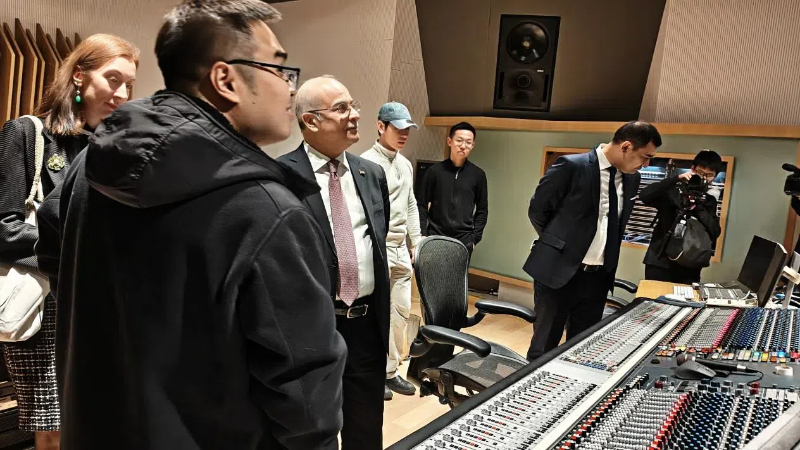 Diplomats visit the dubbing studio.