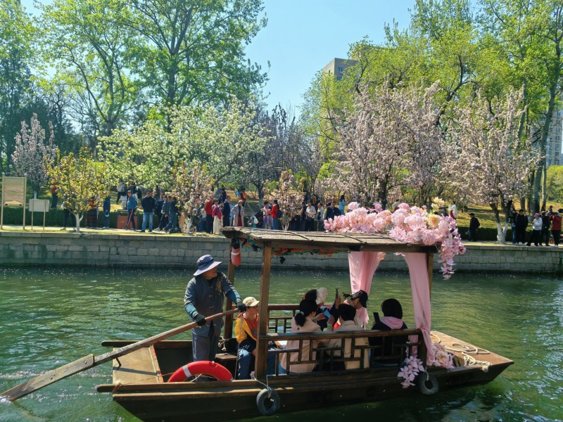 This year, ancient-style sculling boats have been introduced, adding an extra touch of charm to the festival. The boats have quickly become a major draw for visitors. Adorned with dainty pink flowers at the bows, the boats blend harmoniously with the surrounding crabapple blossoms, as if nature and craftsmanship had collaborated to create a picture-perfect scene.