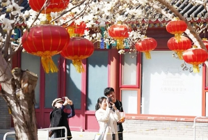 As spring dawns, Beihai Park bursts with vibrant life, with flowers in full bloom, competing for attention in a beautiful display.
