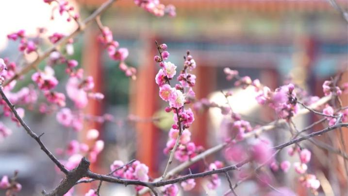 At the West Bank Dock and Haopu Garden, the spring plums are in full bloom, and the sight is intoxicating as petals dance in the gentle breeze.
