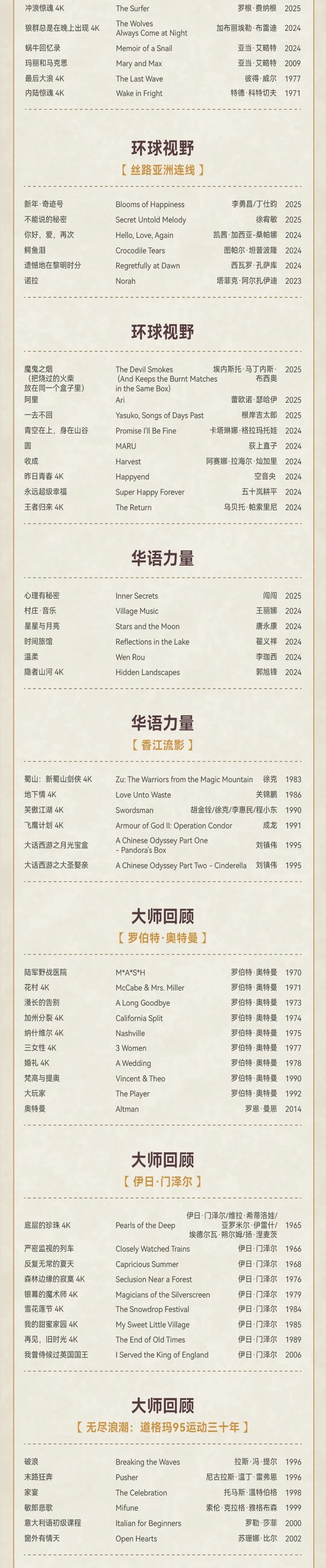 As spring breathes fresh life into April, the 15th Beijing International Film Festival (BJIFF) will make its grand return on schedule. This year's "Beijing Film Panorama" section features over 300 films including global masterpieces, restored classics and new Chinese-language works. Check out its full lineup now!