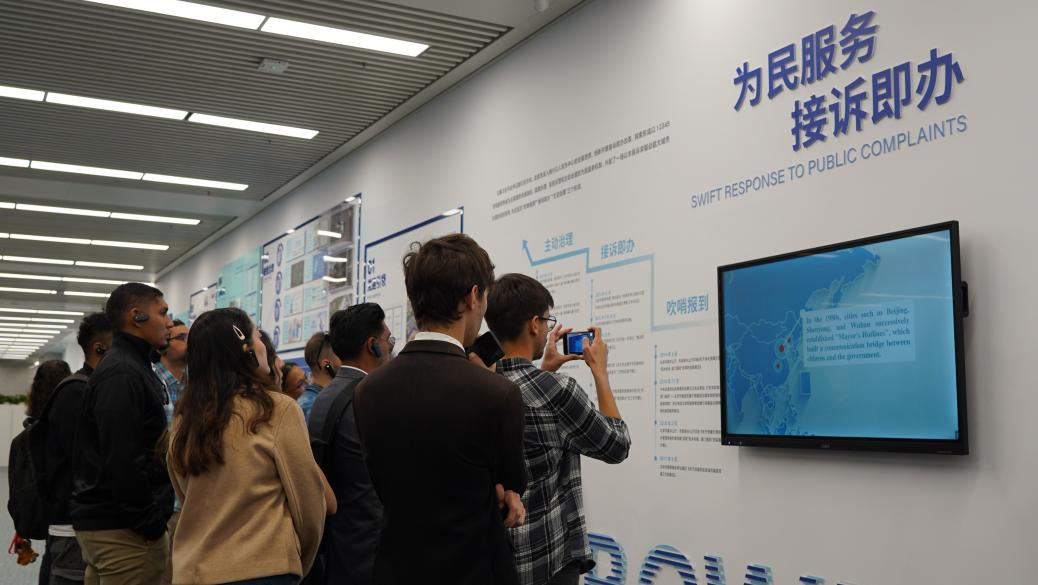 The participating foreign journalists learn about the working mechanism of the "Swift Response to Public Complaints" initiative.
