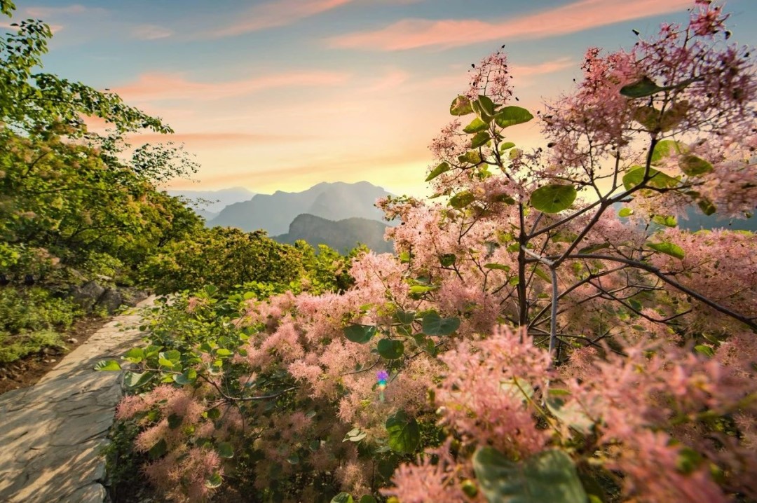 The 8th Youlan Mountain Smoke Tree Flower Festival will take place at Pofengling from May 1 to June 2. During the event, visitors wearing standard Hanfu (including shoes and headwear) can enjoy free admission.