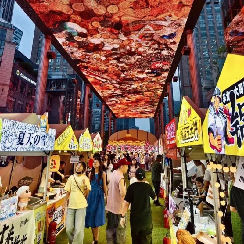 As summer night breezes whisper, step into Beijing's THE PLACE (世贸天阶) pedestrian street, transformed into a vibrant urban camping-themed bazaar. Neat rows of tented stalls blend gourmet bites, cultural creations, live music, and games. Savory aromas fill the air as over 60 night market vendors showcase regional specialties.