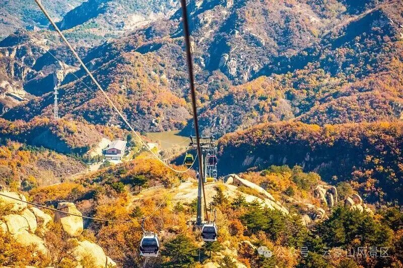 Yunmeng Mountain Scenic Area boasts over 15.33 square kilometers of bright red leaves. One of the best ways to admire this autumn foliage is to take the cable car halfway up the mountain to the viewing platform, a perfect spot to take in the panoramic views.