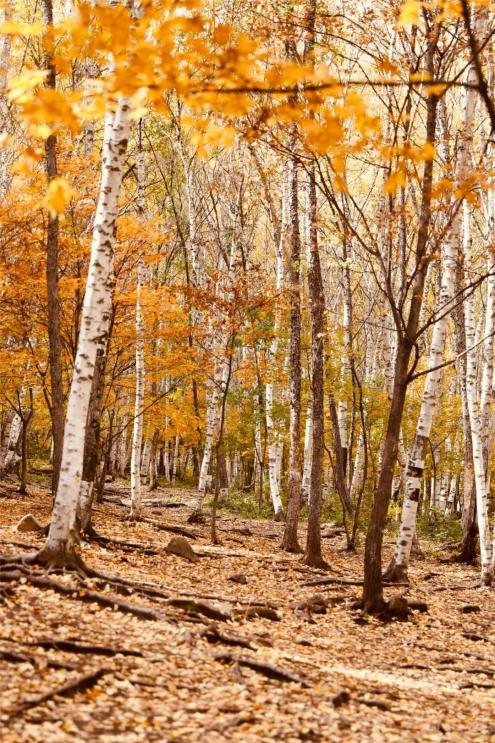 In autumn, this primeval forest park resembles a painter's palette, with the yellow of birch forests, the red of shrubbery, and other vibrant colors splashed across the hills and valleys.