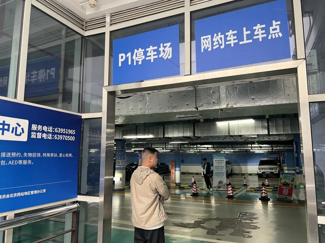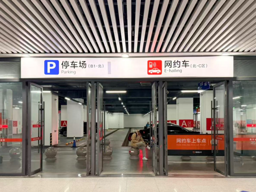 After exiting the station, follow the "E-hailing" (网约车) markings on the floor to reach the North Underground Parking Lot.