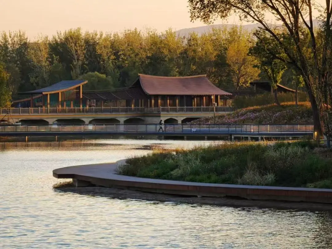 Beyond its scenic appeal, the park also functions as a living ecosystem. Six water purification channels create diverse wetland landscapes, including rivers, lakes, streams, and ponds. Where land meets water, a variety of plants form a natural water filtration barrier. This ecological ingenuity turns the park into not only an urban “green lung” but also an important site for stormwater storage and flood regulation.
