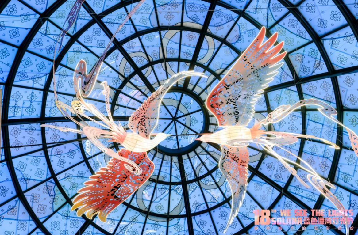 The festival integrates paper-cuttings from the Lingnan region (a region in the south of the Nanling Mountains), an intangible cultural heritage item, transforming traditional 2D paper cuts into 3D light installations. Designs based on the five traditional auspicious mythical creatures are also displayed on site, symbolizing the blessings of "Fu (Fortune), Lu (Prosperity), Shou (Longevity), Xi (Joy), and Cai (Wealth)".