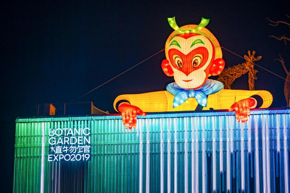 The park features over 50 lantern sets made with intangible cultural heritage techniques, which are arranged along a 2.5-kilometer route. These displays recreate iconic scenes such as the Southern Heavenly Gate and the Peach Garden in the animated film "Havoc in Heaven", adapted from the Chinese classic novel Journey to the West. A special space-themed exhibition in front of the park's botanical garden showcases aerospace equipment such as Tiangong space station's core module and the Chang'e lunar probe. By integrating traditional lantern craftsmanship with digital technologies, the event offers an immersive journey that spans from ancient mythology to outer space.