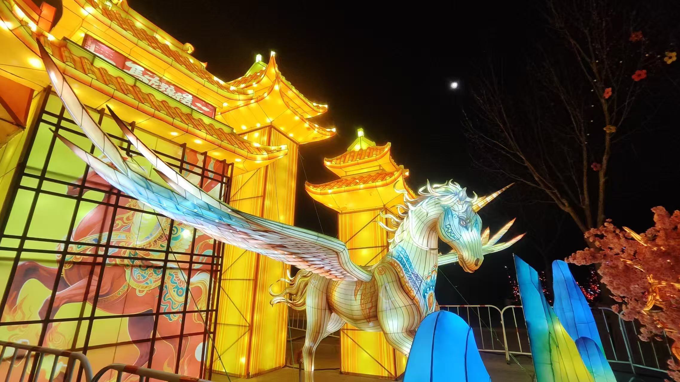 Featuring seven themed exhibition areas with 180 creative light installations, this event deeply integrates intangible cultural heritage lantern craftsmanship with miniatures of global landmarks. Visitors can interact with the mechanical steed titled "Instant Success" (马到成功), ride the "Dreamy Unicorn" (梦幻独角兽) carriage through the miniatures of world-famous landmarks, and marvel at the beauty of a traditional costume worn by the "Jingcai Goddess" (京彩女神).