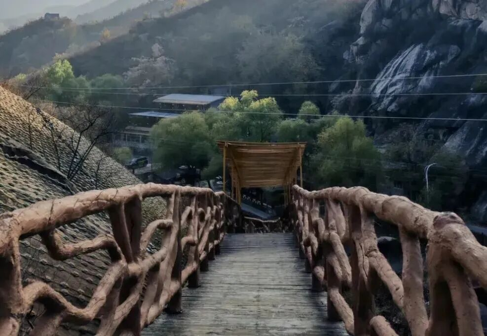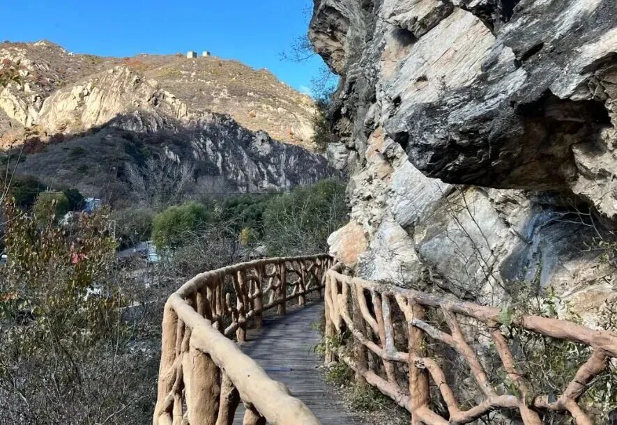 Stretching 7,558 meters in total length, the Shentangyu Boardwalk begins on the north side of the archway at the Buye Valley entrance in Yanqi Town and connects four villages along the way, namely Shentangyu, Guandi, Shangguandi, and Shipian, making it the longest waterfront trail within Beijing's valleys and ravines.