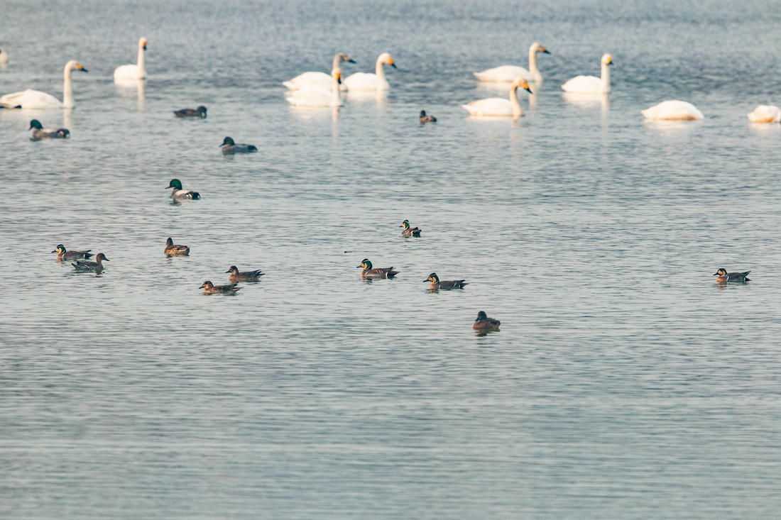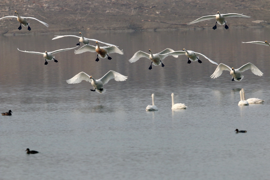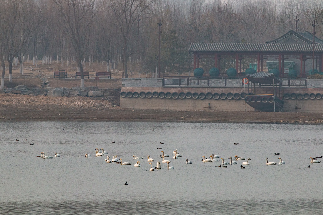 On March 4, the national-level protected animals, including 15 little swans, 126 baikal teals, and 10 smews (mergellus albelluses) were seen resting in the lake together with over 1000 wild ducks at the Nanhaizi Milu Park in Daxing District of Beijing.