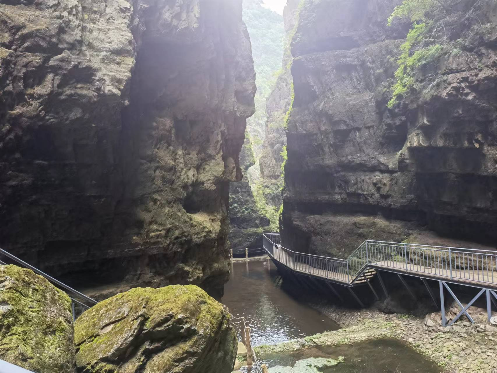 The east-west canyon is over 20 kilometers in length including one canyon and nine valleys. Its maximum width is over ten meters and the narrowest point is wide for only a car to pass through.