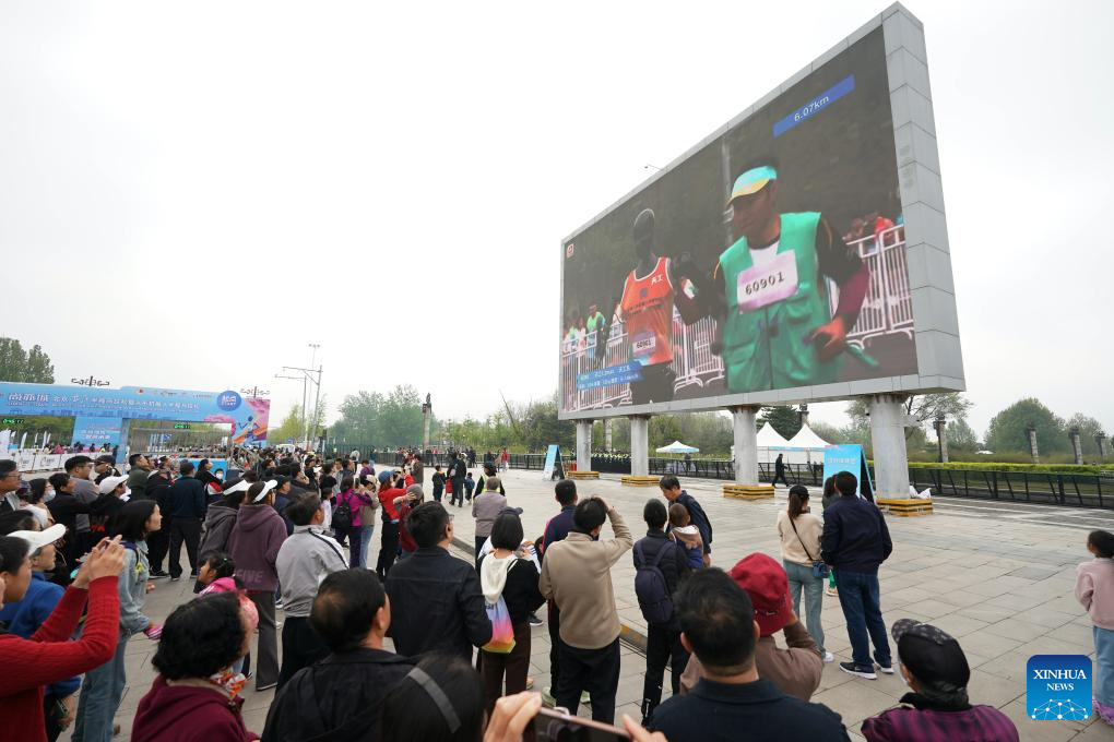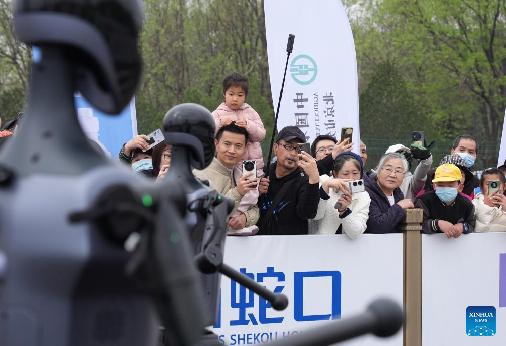 People watch the Beijing E-Town half-marathon and humanoid robots half-marathon in the Beijing Economic-Technological Development Area in southeast Beijing, China, April 19, 2025. (Xinhua/Zhang Chenlin)