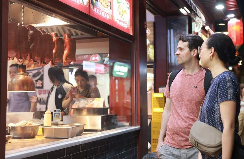 In May, Beijing is buzzing with foreign visitors enchanted by the allure of Chinese culture. At landmarks such as Tian'anmen Square, the Temple of Heaven, Shichahai and South Luogu Lane (Nanluoguxiang), tourists from around the world are immersing themselves in traditional Chinese fashion, savoring local delicacies, and shopping for exquisite handicrafts.