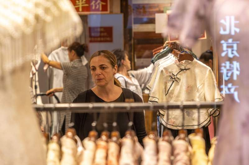 On May 16, in a boutique of qipao at South Luogu Lane, a foreign visitor browsed for the perfect Chinese-style outfit.