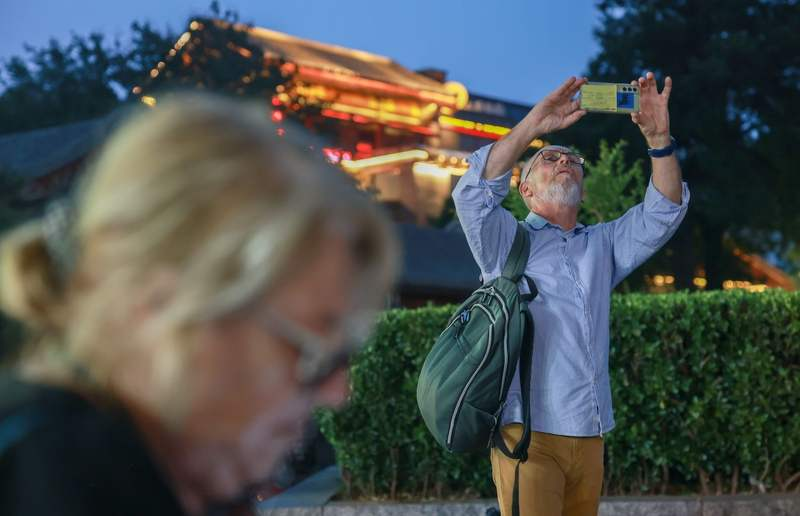 On the evening of May 16, a foreign visitor raised his phone to capture the nightscape of Shichahai.