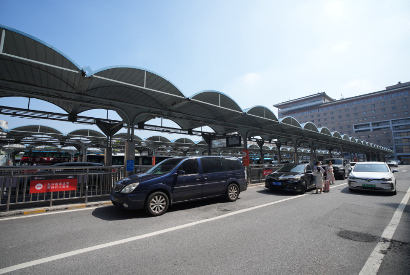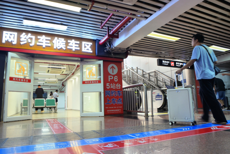 Beijing Railway Station: Additional ground-level e-hailing pickup points have been set up to ease congestion in underground parking facilities.