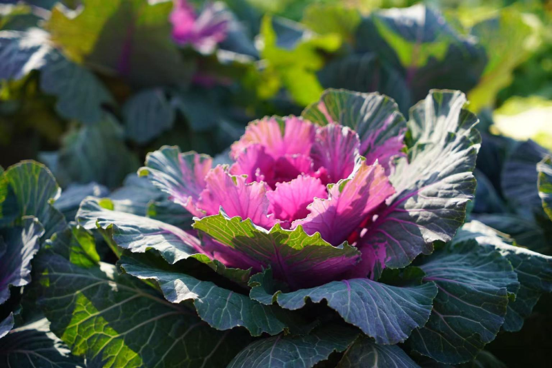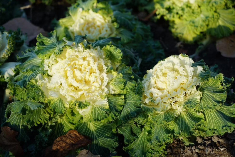 Ornamental kale, often called a "leaf peony" for its flower-like appearance, is one of the few hardy foliage plants in Northern China. It retains its vibrant colors even in harsh winter conditions, making it an important choice for winter landscapes.