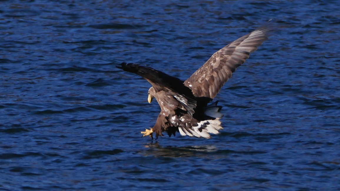On February 20, a bird-watching volunteer photographed a white-tailed sea eagle equipped with a satellite tracker at the Miyun Reservoir. The species is designated as a first-class protected species of China.