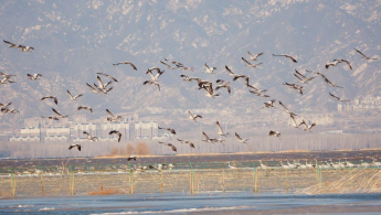 Recently, a large flock of common cranes arrived at Yeya Lake National Wetland Park in Yanqing District, refueling for their northward journey.