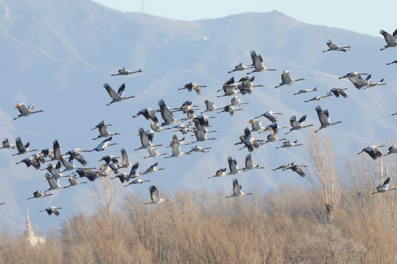 Recently, a large flock of common cranes arrived at Yeya Lake National Wetland Park in Yanqing District, refueling for their northward journey.