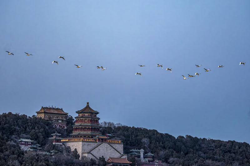 At Kunming Lake in the Summer Palace, dozens of whooper swans made an appearance. As one of Beijing's important water sources, the Summer Palace has provided a haven for wildlife through years of persistent efforts in water source ecological protection and measures such as postponing the start of boat services each spring.
