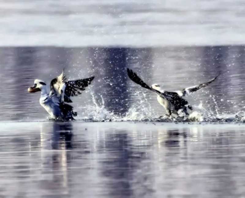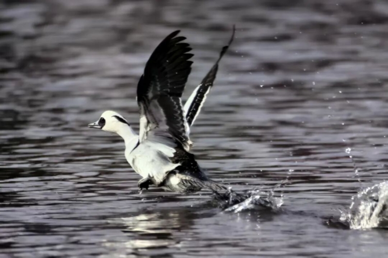 Mergellus albellus, also known as the smew, is affectionately called a "Panda Duck" by locals because of the distinctive black patches around its eyes that resemble those of a giant panda.