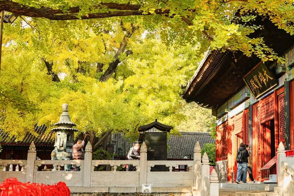 The temple is home to a ginkgo tree planted during the Tang Dynasty. This giant of nearly 1,400 years old is now in its prime period.