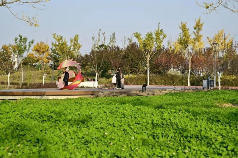 As a regional comprehensive park covering 20.76 hectares, Songzhuang Cultural and Creative Park is carefully landscaped to offer "scenery for all four seasons". It has 1,531 deciduous trees, complemented by evergreens and groundcover plants, allowing visitors to enjoy lush nature all year round. A 4,000-square-meter EAU-coated running track provides a professional and comfortable space for running enthusiasts.