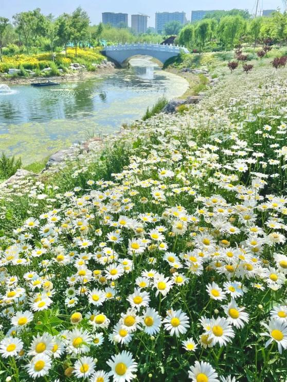 What comes to mind when you think of early summer? The shade of trees, fizzy soda, the chirp of cicadas, or a sea of flowers? Across Beijing, shasta daisies have now blanketed the city in their early summer bloom. Let's immerse ourselves in this refreshing, captivating floral landscape!