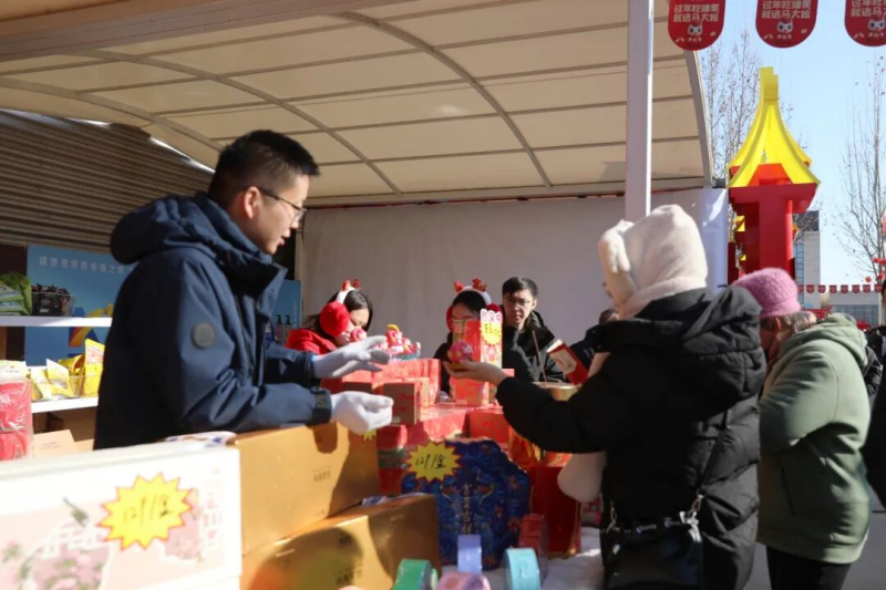 The first-ever Madajie Chinese New Year Goods Carnival, taking place at Changjin Road, Shunyi District, opened on January 24 and will last until February 12. The market gathers nearly 60 brands, with stands selling foods, general merchandise, and household items. An intangible cultural heritage experience area has also been set up, where visitors can try blowing sugar figures, making crisp candies, etc. On weekends, dragon and lion dance, dagu (a type of drum performances), and diyangge (a form of traditional dance in northern China) shows are scheduled to be staged in turn.