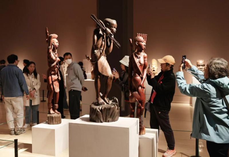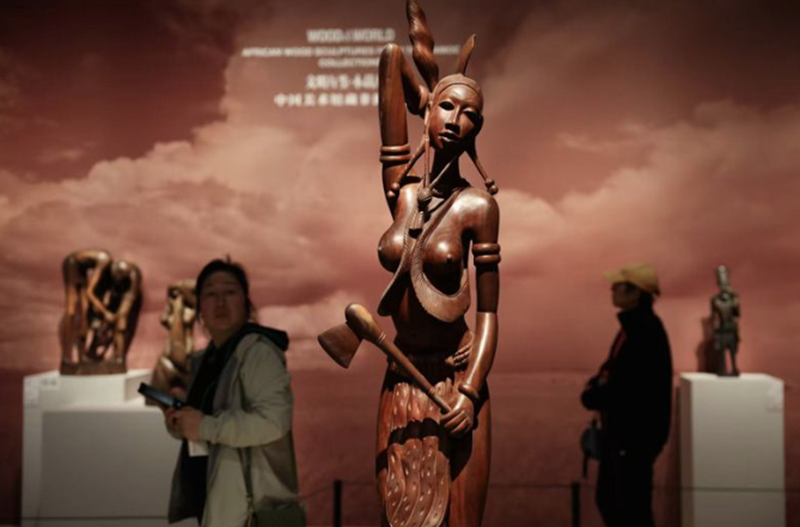 On April 12, the exhibition titled "Wood and World: African Wood Sculptures from the NAMOC Collections" opened at the National Art Museum of China (NAMOC). As a key project of the "China-Africa Year of People-to-People Exchanges", this exhibition is co-hosted by the China International Culture Association and NAMOC. It features a total of 128 fine works including wood sculptures, bronze sculptures and paintings, which are created by artists from several African countries including Benin, Côte d'Ivoire, the Democratic Republic of the Congo (DRC), Ghana, Kenya, Mozambique, Nigeria, and Tanzania, as well as some Chinese artists.