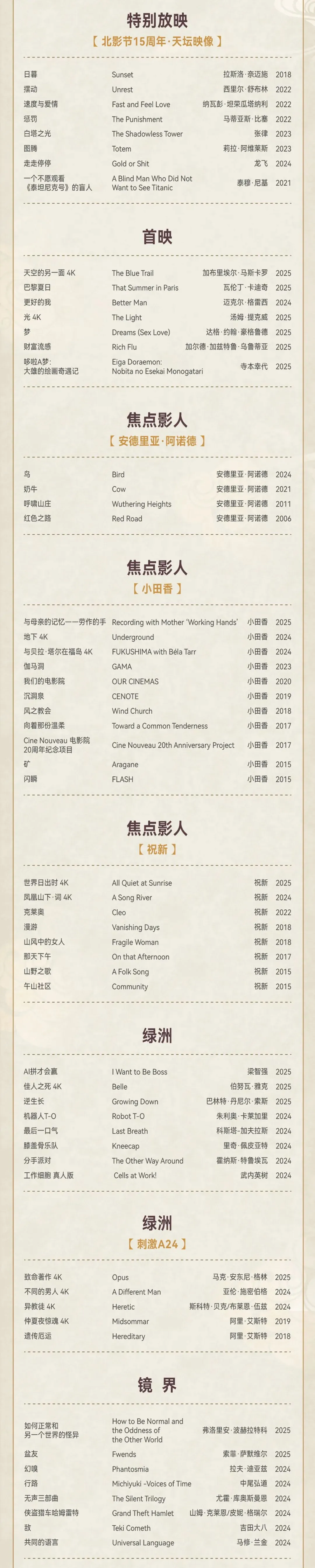 As spring breathes fresh life into April, the 15th Beijing International Film Festival (BJIFF) will make its grand return on schedule. This year's "Beijing Film Panorama" section features over 300 films including global masterpieces, restored classics and new Chinese-language works. Check out its full lineup now!